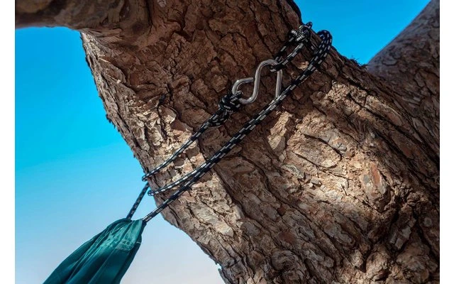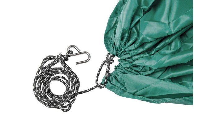 An extra large, particularly lightweight hammock with integrated rope and hook, no additional hooks or rope are required to hang it up. Exceptionally sturdy, breathable and skin-friendly material.