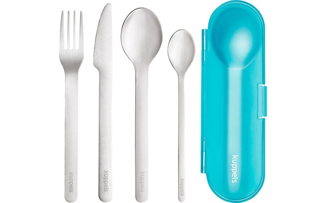 4-piece cutlery set consisting of 1 dinner knife, 1 dinner fork, 1 dinner cube, 1 coffee cube, for 1 person, material: blade steel 13/0, stainless steel 18/0, finish: satin, machine washable