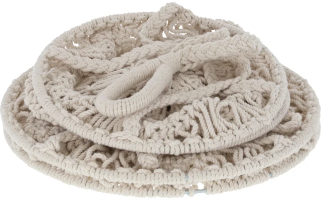 Hanging fruit basket with two storage baskets that are reinforced with 4 sturdy metal rings and a sturdy holding loop. The Berger macramé items are handmade from 100% high quality soft cotton.