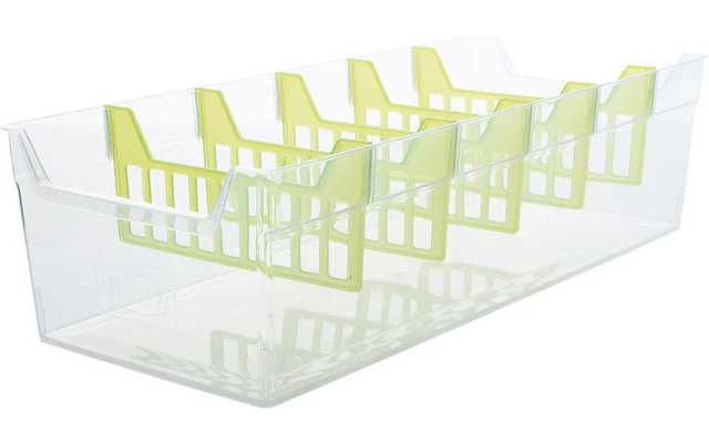 Lightweight spice container for sorting and storing spice grinders and refill packs. With removable separators for optimum arrangement.