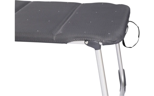 A very comfortable and extra high lounger. The lounger is fully upholstered and comes with a cushion for maximum relaxation. Due to the open fabric structure, no moisture remains in this high quality upholstered fabric. The backrest of this lounger is 4-way adjustable. It provides optimal comfort due to the elastic fastening of the fabric. For easy sitting down and standing up, the lounger is extra wide, extra long and extra high. The sturdy stabilizers provide optimal grip on various surfaces. Includes convenient side pocket for beach accessories. The lounger can be folded very flat, and is easy to carry with the carrying handles.