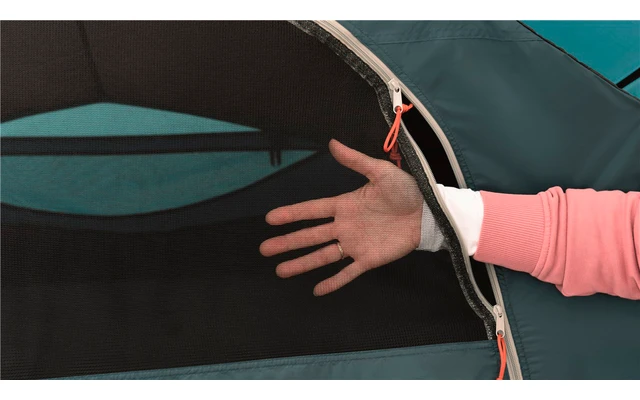 The Easy Camp Edendale 400 can accommodate up to four campers and is an ideal tunnel tent for young families. It is quick and easy to pitch and the fiberglass poles make for a lightweight tent that is easy to handle when packing away. Access is easy through the front door, which is protected from the elements by a neat canopy. The darkened sleep-tight sleeping area blocks out outside light for a restful night’s sleep. The full headroom living area offers plenty of room to relax with windows on the front and side. Flexible ventilation options let you adjust air circulation as needed.