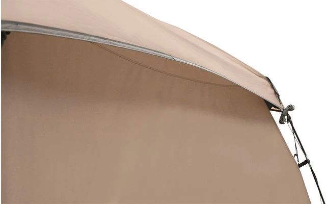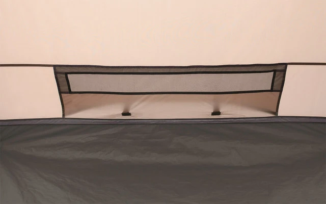 The Easy Camp Moonlight Yurt has pre-curved GRP poles that provide full headroom. It is designed for up to six glampers, giving families and friends plenty of space and headroom – for a unique nature experience and outdoor fun together. PVC windows provide ample light inside. The roll-up curtains with fixed hanging points also provide protection from prying eyes. Easy access is provided by the large, collapsible entrance, which can be opened and closed flexibly with a two-way zip.Large mesh panels under the flysheet, a mesh window integrated into the door with a roll-up curtain, and covered vents at the back provide good ventilation.