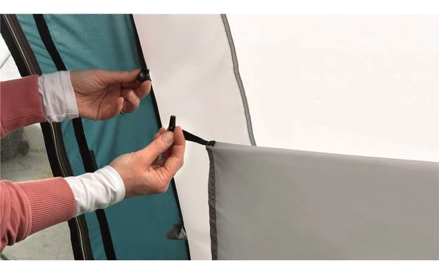 The Easy Camp Palmdale 800 Lux is a versatile tent for up to eight people with a large rear interior, a removable interior and a standing height in the spacious living area with side curtain windows. The large front moisture zone for your outdoor gear makes it ideal for active vacations. Access to the living area is flexible via a fully insect-proof mesh door and side entrance with mesh. Ventilation at the back and mesh panels at the front of the living area provide easily regulated air circulation, while the Sleep Tight interior ensures a sound night’s sleep for all.