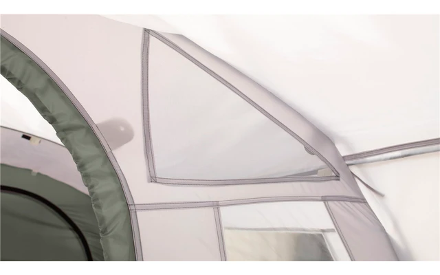 The Wimberly has a flexible tunnel construction to offer and is equipped with a pre-bent fiberglass pole, plus external fiberglass poles for stability, canopy and fabric tensioning. Supports for the large awning and a tensioning device for the tent fabric. Numerous features make this enclosed awning particularly practical: standing height, five windows with curtains, a double door at the back and a front door, large ventilation openings, and a roll-up tent floor that covers the entire interior surface. An optional accessory is an inner tent for two people that can be attached to the sides of the tent as desired.