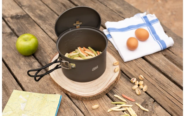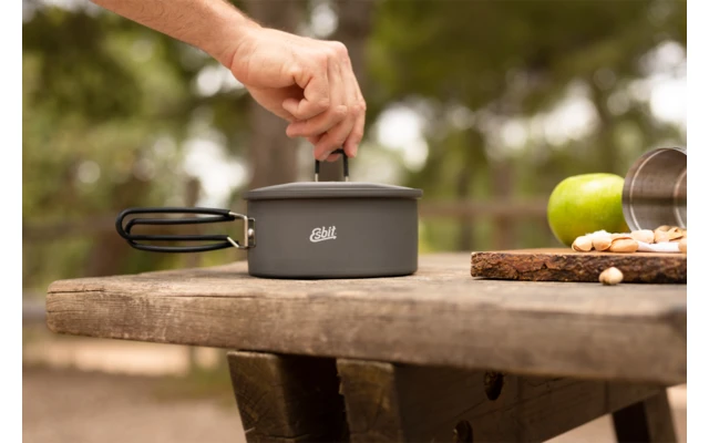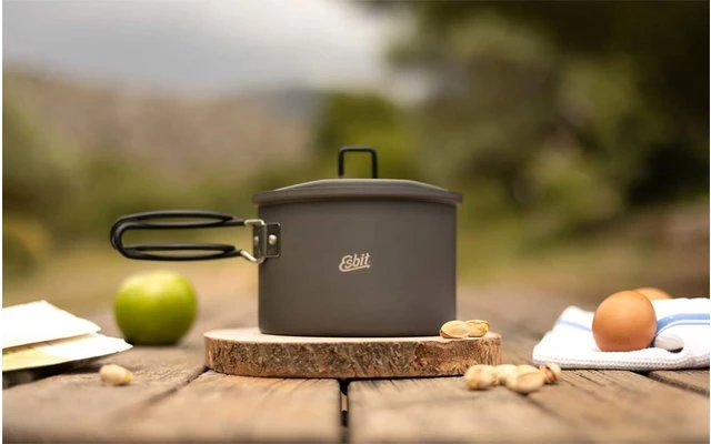 As carefree as the time in nature should also be the luggage. That’s why our pots made of extremely lightweight, hard-anodized aluminum are the right choice. They weigh only about 227 g (1100 ml) and 258 g (1600 ml) each. The volume is indicated inside the pot in ml and oz