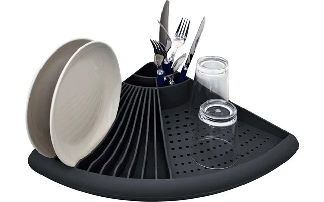 Can be used as a dish rack and colander. Extremely space-saving square design.