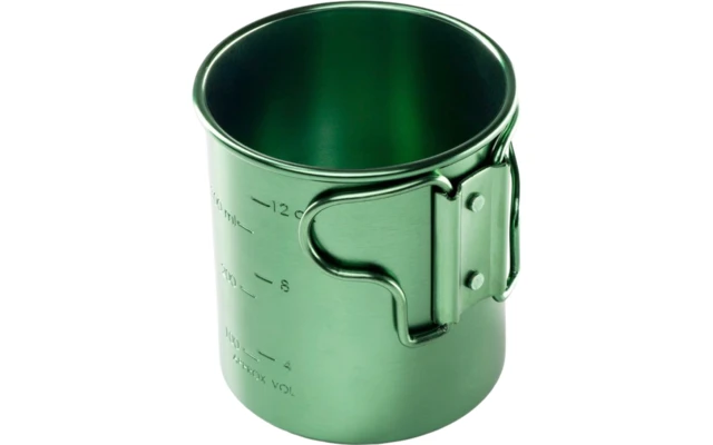 Hold your favorite drink or measure the ingredients for your next meal. The bright and lightweight 415 ml Bugaboo Cup belies strength and reliability. Made of high-quality aluminum, this ultra-light camping and hiking cup features folding handles and stamped graduations.