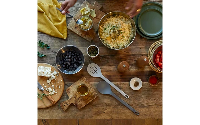 This 2-piece serving spoon set can not only scoop food, but also strain and serve – making it easy to eat at the campsite or in the garden. And when you’re done eating, they’re easy to clean and dishwasher safe.