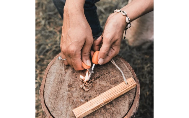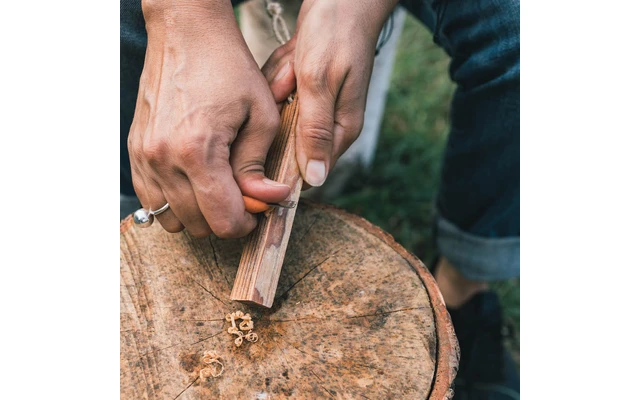 The Light My Fire FireSteel BIO Scout Firestarter is your faithful companion when it comes to lighting a fire in any weather. Whether you’re barbecuing or camping – the reliable magnesium alloy ignition steel simply always works. It is a permanent and durable lighter for about 3,000 ignitions. The 3,000° Celsius (5,400° Fahrenheit) hot sparks start a fire in any weather. The plastic parts on the FireSteel 2.0 BIO Scout are made of organic plastics. With this firelighter you can quickly and easily light Light My Fire TinderSticks, leaves, wood, flammable gas or liquid fuels. Perfect for camping and barbecues. The fire starter is also equipped with a signal whistle and a flexible cord. This light, compact and reliable lighter should not be missing on any excursion
