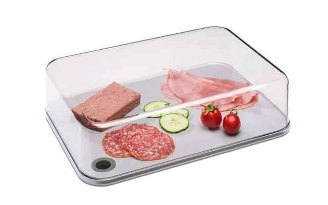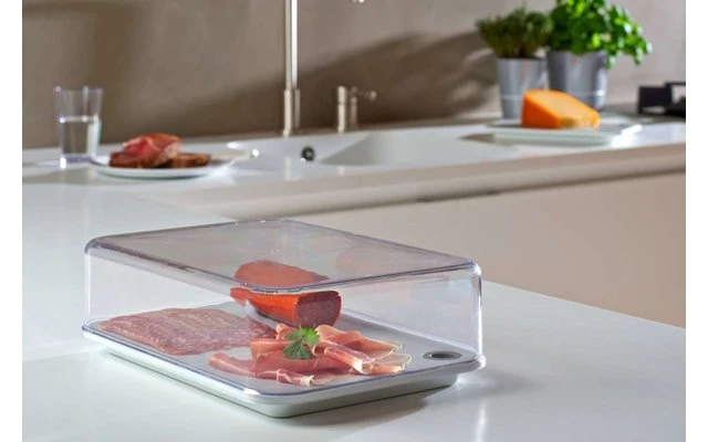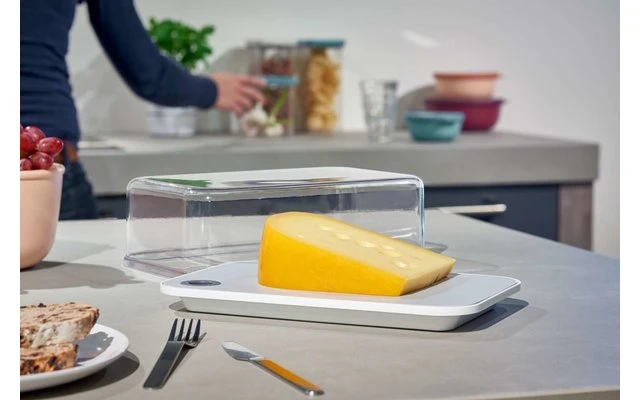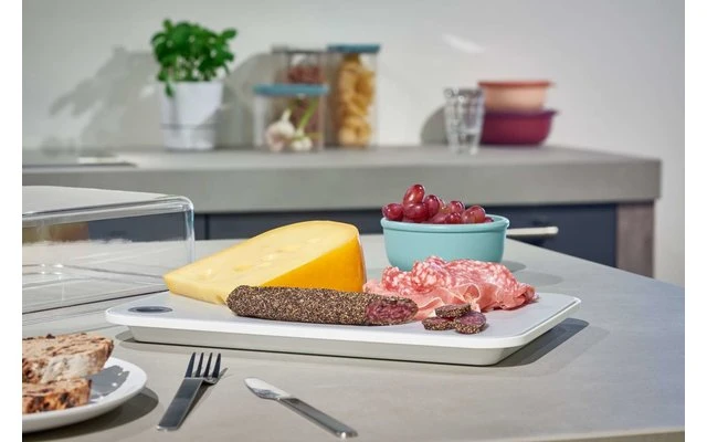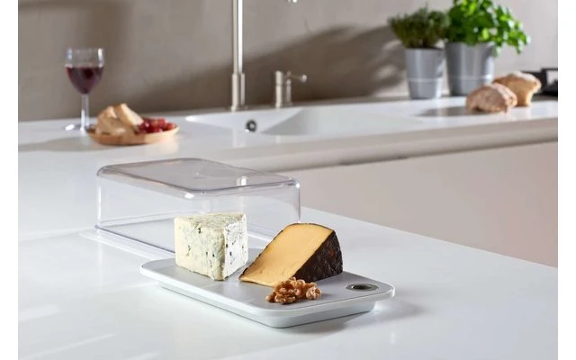 The Modula serving box by Mepal includes a removable gray cutting board and allows a direct view of the contents, even in the refrigerator! The transparent lid provides a perfect seal, making this box ideal for storing and presenting a variety of cheeses, without annoying odors. In addition, the sturdy serving box can be cleaned in the dishwasher.