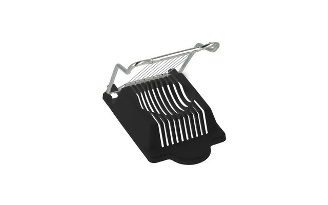 Egg slicer made of sturdy plastic with stainless steel cutting wires.