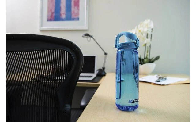 The drinking bottle from Nalgene with sophisticated closure technology. With one-hand pressure closure for quick and convenient drinking during your outdoor activities. The lid can also be closed 100% waterproof by means of a metal clip. By unscrewing the complete lid, the bottle can be quickly refilled and perfectly cleaned. Made of Tritan (TM) copolyester, the lid is made of polypropylene. Dishwasher safe. Super handy, the 0.65 L variant fits in standard cup holders – even when cycling. As usual with Nalgene with level indicator e.g. for safe mixing of mineral drinks.