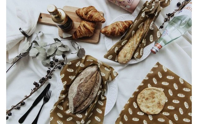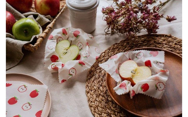 Beeswax cloths in three different sizes as an alternative to aluminium and plastic foil made of 100% natural materials. They are reusable, biodegradable and sustainable. They can be used for up to one year – after that they can be re-grown or composted. The warmth of the hands makes the cloth flexible and thus adheres to smooth surfaces. Perfect for wrapping bread, pastries, fruit, cheese, berries and leftovers, or for covering bowls and dishes. For cleaning, simply rinse with lukewarm (max. 40°C) water and soap. Not suitable for raw meat and fish.