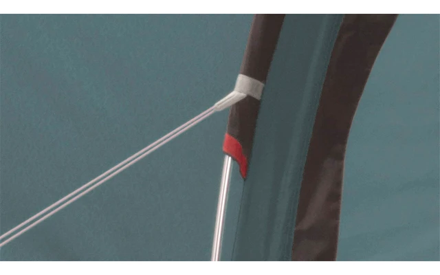 The combination of dome shape and short cross ridge pole provides flexible living, cooking and storage space with excellent interior height and width, allowing both occupants to sit side by side. Twin doors allow each camper easy access and options when opening doors to protect from wind and provide cross ventilation. Locking tips and double eyelets in heavy-duty webbing secure the interior poles to the ridge pole.