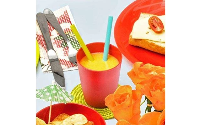 With the mug from the Caruba series by Rotho you kill two birds with one stone. The shapely cup enriches any table decoration and is easy to transport. By using the cup made of bisphenol A-free plastic from Rotho, you also make an important contribution to environmental protection. Whether coffee or apple spritzer, hot and cold drinks can be enjoyed comfortably in the Caruba mug. Looking for tableware for a child’s birthday party? With cups, bowls and plates from the Caruba series, you set the birthday table nicely and don’t have to worry if something falls to the floor. Because the kitchen gadgets are break-proof and robust.
