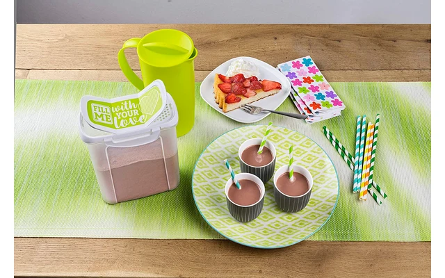Open cereal bags, flour or pasta packages not only look unattractive – due to the humidity, the food also spoils more quickly and is possibly exposed to vermin such as flour moths. The CLIC & LOCK tightly sealable storage tin protects your supplies and gives you a convenient overview at all times thanks to the transparent material and the liter scale. Also the tiresome spilling of flour, sugar & Co has an end.