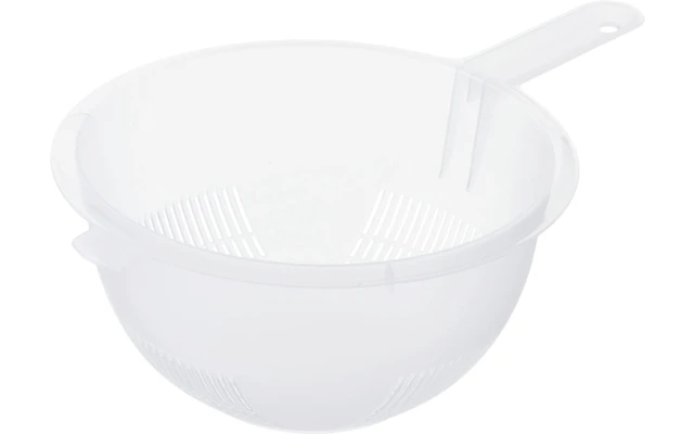 The RONDO strainer from Rotho is an all-rounder that makes your kitchen work noticeably easier. The dishwasher-safe colander has a low own weight and is therefore more handy than heavy stainless steel colanders. With the strainer from the RONDO series, you can pour off hot potato water without having to awkwardly hold the pot lid at an angle on the potato pot. Draining vegetables or washed lettuce is also done effortlessly with the sturdy kitchen strainer. Because the strainer RONDO can be attached to the pot or sink thanks to the handles and you have both hands free.