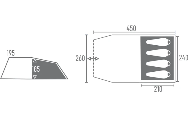 - Canopy: The front entrance can be set up as a sun awning for extra protection from sun and rain