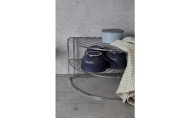 The exclusive crockery corner shelf fits into any kitchen corner in a space-saving way. With the two shelves and another level, the chrome shelf offers plenty of storage space for dishes and cooking utensils or smaller kitchen appliances. Food can also be stored within easy reach on the practical shelf. This makes the dish rack a useful helper in any household.