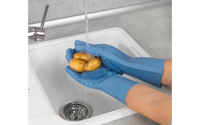 When not in use, the two reliable silicone gloves can be conveniently hung up at the integrated eyelet ready to hand. In the diverse WENKO range there are other numerous cleaning aids that make your kitchen work easier.