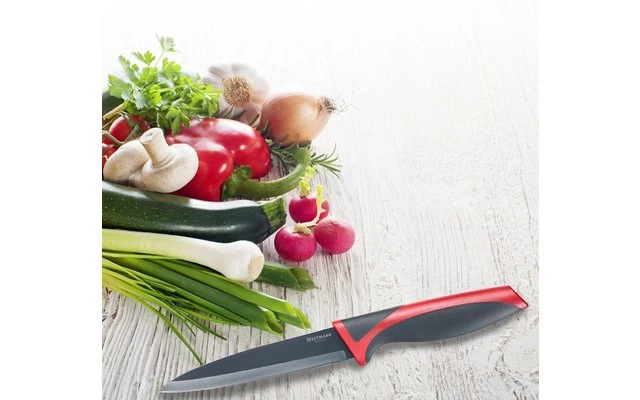 Medium-sized, functional utility knife with sharp, narrow blade for cutting, chopping, slicing and peeling fruit, vegetables and co.